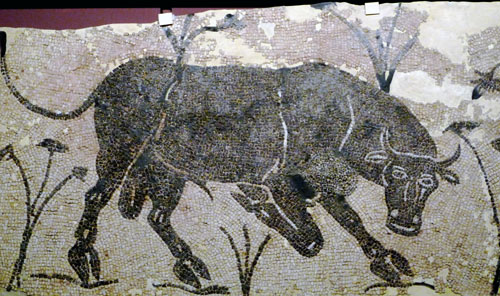 The photo depicts a detail from a 2nd Century Roman pavement mosaic in Ilici, now known as Elche (Alicante).