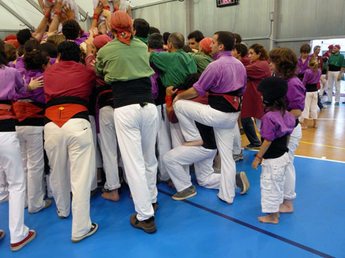 The young boy at the right wearing a crash helmet is the Enxaneta, the youngest one of the castle and the one who climbs to the top. I do not think that he was five yet.