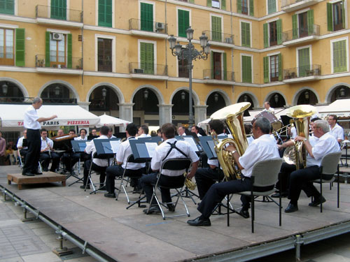 The photo shows the Banda Municipal de Música de Palma, performing bits of Carmen by Georges Bizet, two weeks ago at Palma’s Plaça Mayor.