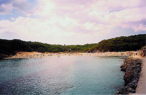 Platja S’Amarador is situated in a natural environment. The natural beach environment consists of rocks and cliff faces and is stunningly beautiful.The sand is very fine and has a bright, white colour. The beach appears to be clean. The seawater is a beautiful shade of light blue and is crystal clear. The water is very clean. Platja S’Amarador is not very long but it is reasonably wide. The beach is quite flat. There are several places to eat and drink on the beach. The beach is easily accessible on foot. There is good parking near the beach [end of quote].