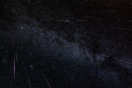 The shooting stars are visible from mid-July each year, with the greatest activity between August 8th and 14th, peaking about August 12th, i. e. today. During the peak, the number of shooting stars seen can reach 60 or more per hour. That’s about one every minute. They can be seen all across the sky, but are primarily visible in the Northern hemisphere. What we see is meteoric dust and what we can see tonight is approximately one thousand year old dust. Makes oneself feel very young indeed.