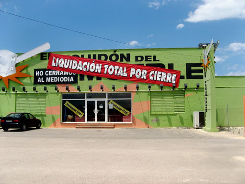 The furniture store shown here was not offering rebajas on the occasion of the Sales, but was selling everything cheaply for the simple reason of closing down for good. I took the photo some six weeks ago; when I passed again a few days ago, the shop had shut down completely. All gone. No more. The economic crisis, I suppose, had cast its spell.