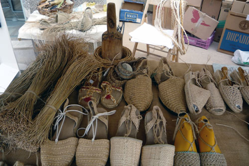 In Mallorca, a traditional craft of making sandals and shoes fashioned of grass, cane, raffia, palm leaves, sisal, bark, agave fibre, or any other odd plant material, strung, knotted, braided or woven into cord, string or bands, existed for centuries but, unfortunately is now on the wane. Only every so often, if you are lucky, one can find an older person still engaged in this art of braiding.