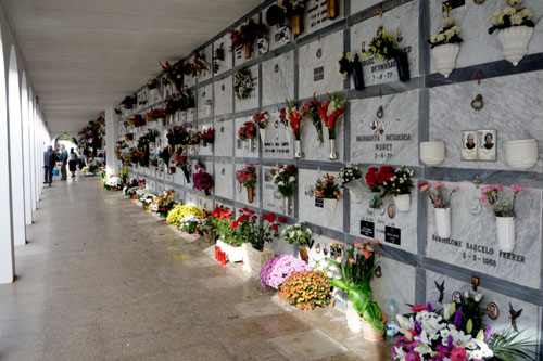 Spain celebrates All Saints’ Day today, or Todos los Santos, or Tots Sants (November 1st). On this day families honour their deceased relatives and friends. Graves and tombs are cleaned and lovingly decorated with fresh flowers. Today, or rather yesterday, is the day when most flowers are sold in Spain every year.