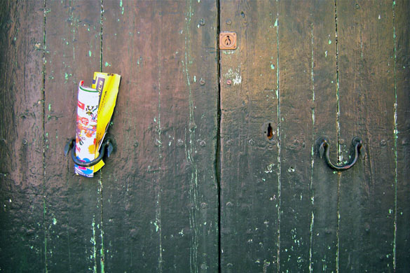 It wasn’t long ago that it was the daily bread rolls left by the baker, in a bag tied to the front door handles, rather than pamphlets. I still see that here in some villages where no one would dream of stealing it.