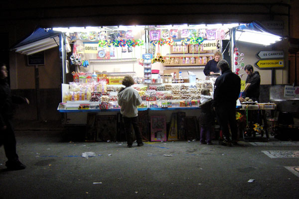 Don’t get me wrong: I do not condone this attitude. In fact I was pleased when I overheard a parent telling his teenage daughter to forget it; no sweets, he said, think about your teeth. I just thought it was a nice photo, brought to you by the makers of the daily Mallorca photo snippets. The sweets stall was in attendance during the Sant Antoni foguerons (bonfires) in the town of Felanitx, a week later than everywhere else, two nights ago.