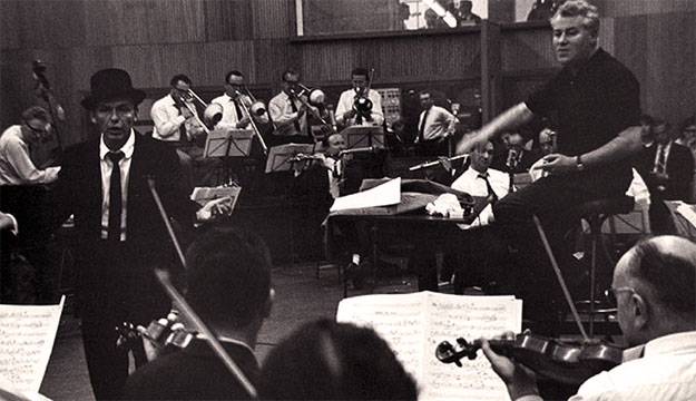 The photo was borrowed from the Internet, courtesy of sinatra.com. Thank you very much. The photo shows Sinatra recording Great Songs from Great Britain in London with conductor Robert Farnon in 1962.