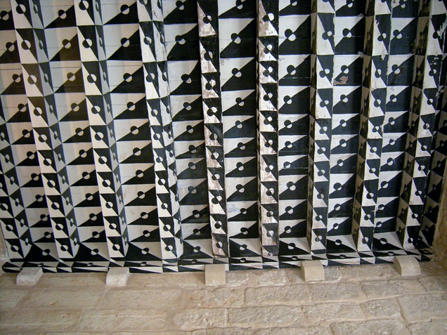 I spotted this beautifully painted ceiling at the Palacio Real de La Almudaina in Palma de Mallorca. I am not in a position to offer you any more specific information, but I would guess that the carpentry was fashioned in Mediaeval times, possibly during the 15th century.