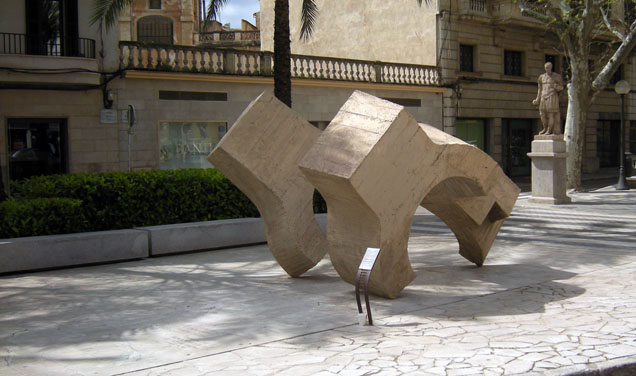 One of the many nice things in Palma de Mallorca is the all-pervasive presence of art and sculptures in public spaces. At the top end of the Rambla dels Ducs de Palma de Mallorca, for instance, you’ll find a large object by Basque artist, Eduardo Chillida, titled Lugar de encuentro V (1975). This sculpture was created by the artist as part of a series during the 70s and was acquired by the Banca March in 1976, to be exhibited in their headquarters in the Avenidas. In 1998, the work was donated by the bank to the Ajuntament de Palma. The artist participated in finding a place to position his œuvre and chose the Rambla, where it was placed in 1999 in Chillida’s presence. The artist died in 2002, age 78.