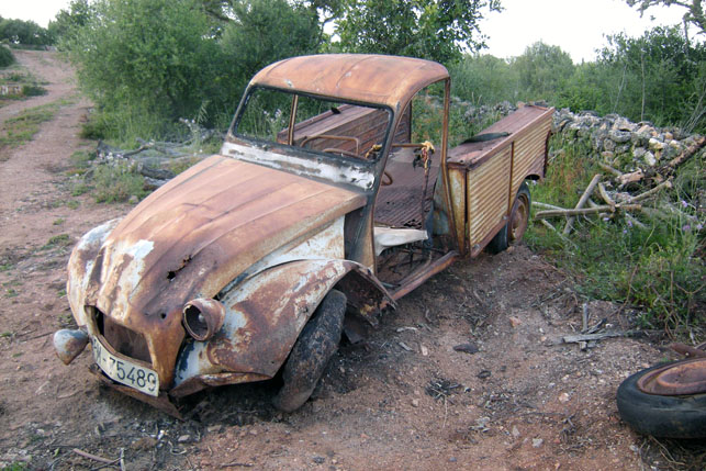 The Citroën 2 CV Fourgonette shown here was probably built during the Sixties and its design altered into a pick-up version. I must admit that I had never seen one of these Citroën pick-up models here in Spain before but, having now spotted one I wanted to share my discovery with you. A friend of mine only recently found this treasure buried somewhere on his land. A beaut it is if you ask me, and a beauty it is if you don’t.