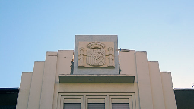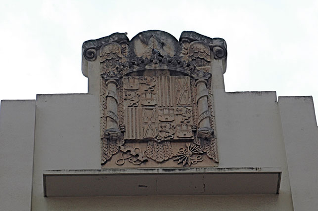 It was time’s up for Gordon Brown yesterday, but also for some of Generalissimo Franco‘s heraldic emblems in Palma de Mallorca. Of course, there is no relation between the two events other than the timing. Whilst the British Prime Minister lasted in office for just under three years, the franquist and fascist heraldry lasted for just over 70 years. The Spanish Ley de la Memoria Histórica (Historical Memory Law) from 2007 urged, amongst other things, for the removal of names and symbols in public streets and places pertaining to the dark years of Spain’s history, i. e. the years of the Spanish Guerra Civil and the time of Francisco Franco, the dictator.