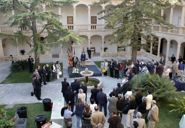 One of the nicest courtyards anywhere in Mallorca has to be the patio of the Monasterio de Sant Bernat de la Real (Monastir de La Real). The problem is that the cloisters are very rarely open to the public. I once had a chance to attend a concert that was given in the monastery’s claustro (cloisters), a few years ago. It proved a rather splendid experience. Then, about a year ago, I simply sneaked into La Real to take a few photos (see photo above) whilst some building work was being carried out in the monastery. The columns were reconditioned, arches were restored, the roofing was relaid and new lighting was installed. As it happens, the reforma is now completed and a grand opening was celebrated the other night (see photo below). Sadly, I was not invited.