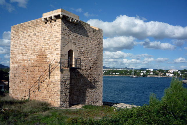 In 1584, the coast of Mallorca was protected by eleven fortified towers against the marauding assaults of the pirates and the corsairs. The Torre de Portopetro was built a few years later, during the early 17th century. Of course, at that time the pueblo of Portopetro did not even exist. The area was then know as the Predio Sa Punta, which belonged to the Danús family from Santanyí.
