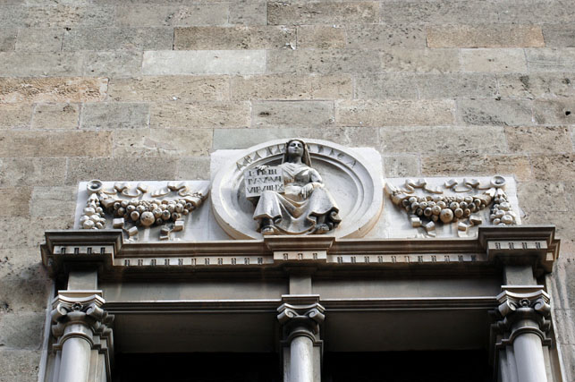 You will find equally beautiful stone carvings, depicting the same seven branches of science on the façade of the Centre Cultural Espai Ramon Llull in Carrer Ramon Llull, just a few metres down from the Sant Francesc church. Shown in my photo (above) is the depiction of Arithmetica, but the other six carvings are equally artistic.