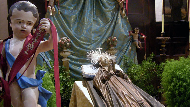 August is the month when Mallorca celebrates the La Mare de Déu d’Agost or La Mare de Déu de la Assumpció (Assumption of Virgin Mary), one of the major festivities in the Catholic calendar. The actual day of the religious occasion is August 15th, but celebrations were in fact held in Mallorca from last Friday and will continue until next Monday. The celebration is also called Dormició de Maria (Dormition of Virgin Mary) and is represented in some of Mallorca’s churches by a reclining statue of the deceased saint, lavishly adorned and prominently displayed. I could direct you to the Esglèsia Parroquial de Sant Miquel (see photo above), the Esglèsia Parroquial de Sant Nicolau, the Esglèsia Parroquial de Santa Eulàlia or the Basílica de Sant Francesc, all of which you’ll find in Palma, to name but a few. In Mallorca’s Part Forana, the pueblos and towns of the hinterland, you’ll find parish churches adorned with the Ascent of Virgin Mary in places such as Campos, Costitx, Felanitx, Muro, Sa Pobla, Sineu, again, to name but a few. Have a look for yourself, but hurry. The show will come to an end next Monday, August 23rd.