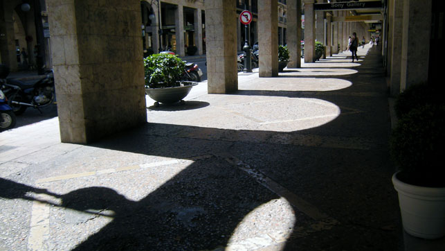 My photo shows the gorgeous shadows painted by the colonnaded arches in Palma’s Avinguda Jaume III, one of the main shopping venues for Palma’s nobility, including members of the Spanish royal household. The street is named after Jaume III de Mallorca (1315-1349), the King of Mallorca between 1324 and 1349.