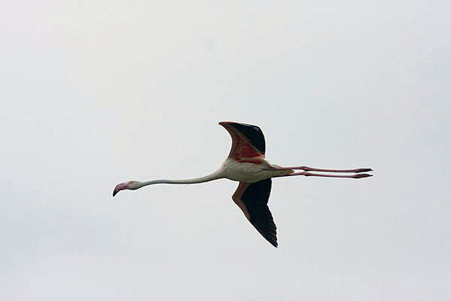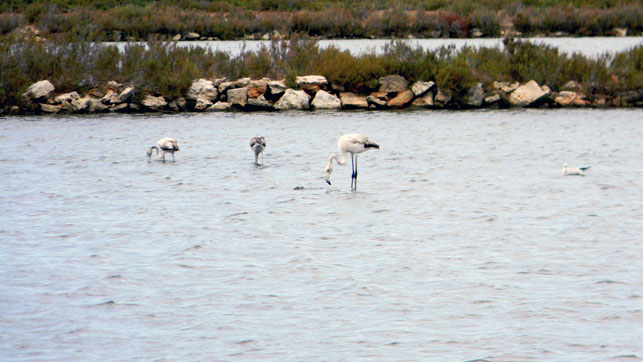 The Greater Flamingo (Phoenicopterus roseus) is native to Spain. In Mallorca, the bird prefers the shallow salt pans of the Salines de Llevant near the coast for its natural habitat during the Winter months, becoming most apparent in the evening. This Phoenicopterus species can be found here as early as October and as late as April. Salines de Llevant is classified as an ANEI (Àrea Natural d’Especial Interès), a Nature Reserve. The area is attractive not only for bird watchers but, also for its general natural beauty. We undertook a very rewarding walk yesterday, taking us from the Banys de Sant Joan de la Font Santa, past the salt factory, the salinas, the forests of pine and juniper trees, and the dunes to the Platja des Trenc, and back again.