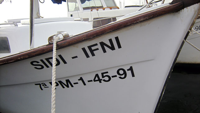 Boats in Spain and elsewhere often have names that tell a story. Often it is the tale of a loving relationship, often a symbol of pomp or showiness, often no more than the name of a place or a simple number. Walking along the Marina of Portocolom the other day, I came across this Llaüt called Sidi-Ifni. You are not alone if you don’t know what Ifni is or where it is situated. Now, here’s a story to tell, and a rather despairing one it is: