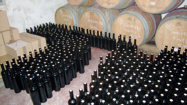 When eight or ten years ago the milk market collapsed, the son, now in his mid-forties, decided to try his hand at professional wine making. The finca produces about 50 tons of grapes of a small number of varieties and of mainly autochtonous origins. Just over 40 tons of the grapes are sold to two star vintners in the area, Ànima Negra and Jaume Mesquida. The remaining grapes are used for the maceration and production of their own two excellent vinos tintos, Corrent and the said Son Vell. Only some 7 tons of grapes make it into bottles. About 1,800 litres of the Son Vell wine are kept for eight months in French oak barrels before they are filled into bottles. When I got there, the 2009 vintage had just been bottled, only a few days earlier. Out of a limited total of 2,100 bottles, only some 500 were still unsold. The bulk of the annual wine production seems to be sold by pre-order, mainly to private individuals. Neither of the two wines is marketed commercially, give or take an occasional exception.