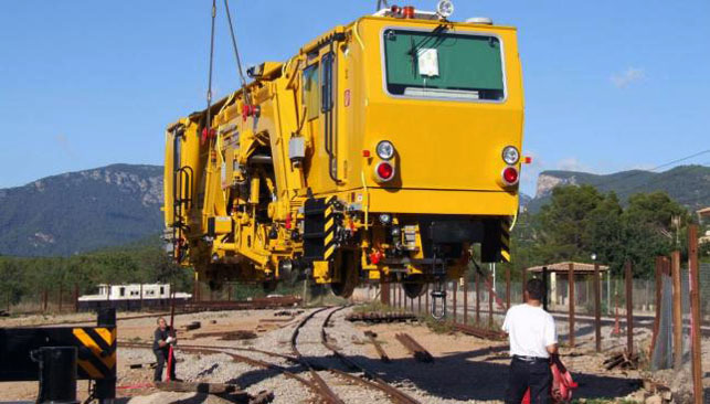 Just in case you were planning to go to Sóller by train some time in December or January, and perhaps take some friends or visitors there, well, you can’t. Services on the Ferrocarril de Sóller will be suspended between Palma and Sóller from December 9th, 2010, to February 1st, 2011, due to some replacement work on the tracks inside the Túnel Major (the longest train tunnel), as well as maintenance work on the tracks between Bunyola and Palma. A heavy duty track levelling machine (photo below) has just arrived in Mallorca via the Port de Barcelona, in time for the maintenance work. The mammoth tamping machine had been ordered to the tune of 1,500,000 Euros from the Austrian makers, Plasser & Theurer. The equipment had to be tailored to specifications to fit the gauge of the Mallorcan track to Sóller, i. e. 914 mm and thus, well below the international standard of 1,000 mm and above. The yellow beast also had to be manufactured in a slim version to fit the narrow tunnels between Bunyola and Sóller.