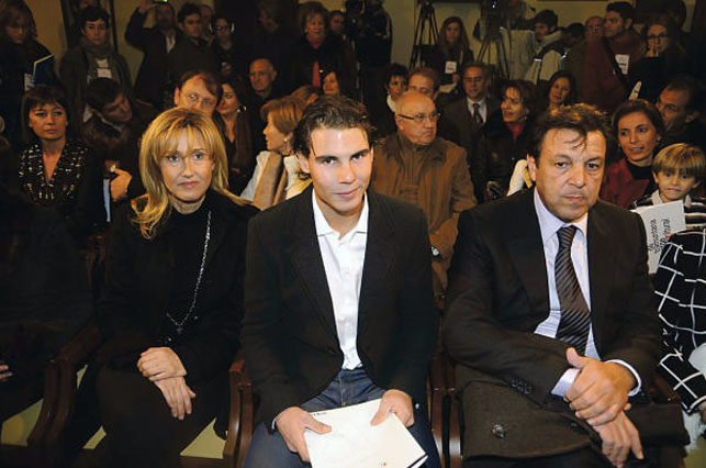 The photo shows Nadal sitting between his mother, Ana María Parera, and his father, Sebastià Nadal. The photo was borrowed from the Internet, courtesy of diariodemallorca.es and the photographer, Guillem Bosch.