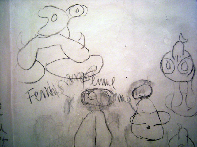Although the Miró foundation and museum in Palma cannot compete with the one in Barcelona, a visit is still to be recommended. The work on display in Palma is captivating but, even more importantly, the artist’s studio (photo top) is open for visits, as is Son Boter, Miró’s large country house where some rooms are painted with large and original charcoal wall drawings executed by the man himself, some thirty or forty years ago (photo bottom).