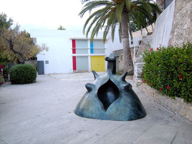 The artist settled in Palma de Mallorca permanently in 1956 and worked here for the remaining 27 years of his life. In 1981, Joan Miró and his wife Pilar Juncosa donated the artist’s studios, together with all the art works, objects, and documents they contained, to the Fundació Pilar i Joan Miró a Mallorca. A new museum building was designed and built for the Miró foundation in Palma and inaugurated in December, 1992. The Fundació Pilar i Joan Miró a Mallorca is a municipal body, administered by the town hall of Palma whose political intentions sometimes seem to be in conflict with the artist’s heirs, depending on the political party in power. Just before this Christmas, ten major works (sculptures and paintings) were withdrawn from the foundation where they had been on loan from the Miró family’s holdings. One of the withdrawn works (Toile brûlée II) will travel to London soon, where it will be on display in a major retrospective exhibition of work by Joan Miró at the Tate Modern from April 2011. Already in 2007, the Miró family had decided to donate the artist’s entire library to the Fundació Joan Miró in Barcelona with some 1,750 books, and not to the foundation in Palma.