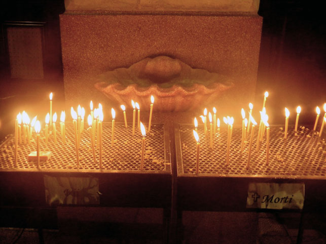 Please note in my photo that Romanian Orthodox Christians use separate candles for the living (Vii) and for the deceased (Morti), or so my very limited abilities of the Romanian language suggest. Again, please help me if I am wrong.