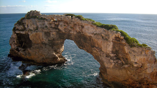 Es Pontàs is an impressive bridge-shaped rock anchored in the Mediterranean Sea near Cala Santanyí. In times gone past, the natural monument has attracted a large number of artists, all striving to capture the rock’s magic on their canvasses. Nowadays, the rock entices a different kind of art. Es Pontàs is a favourite destination for dare-devil rock climbers such as US American Chris Sharma (Santa Cruz, CA, 1981) who attempted to climb the arched rock more than 100 times before he finally succeeded in 2006. Sharma climbed without a rope and took an untold number of falls into the water from heights of up to 15 metres before his ultimate success at Es Pontàs. His incredible first ascent of the arched rock is one of the highlights of a film about the rock climber under the title of King Lines (see video clip).