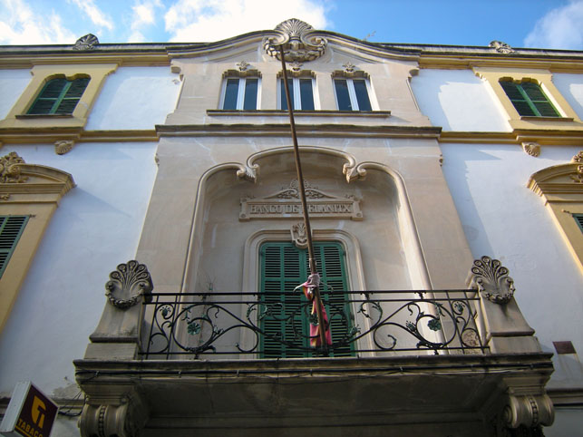 Felanitx is not really a pretty town, notwithstanding its historical and cultural relevance. There is a very attractive parish church, though, and there are some very nice windmills plus a number of town dwellings pleasing to the eye, such as the Ajuntament (town hall), the Estació Enològica, the Escorxador Vell and the Celler Cooperatiu Es Sindicat. One of the dozen or so buildings of historical significance and, at the same time, architectural grandeur, must be the building of the Banco de Felanitx. The locally owned bank was at its time a symbol of the town’s affluence and substance.