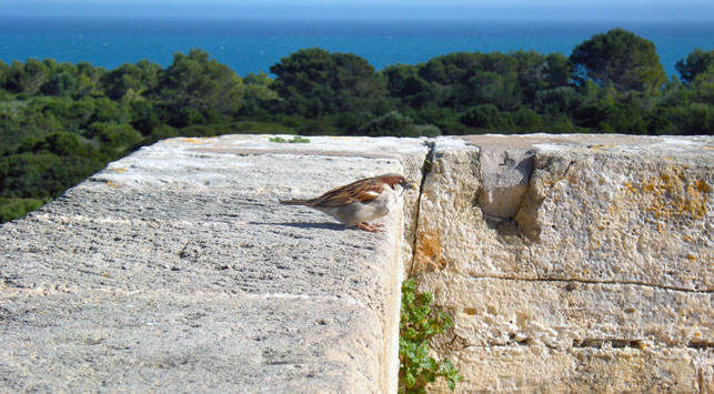 Not often does one get a bird’s-eye view of a bird but there you are. I was looking out for tsunamis last Sunday when this little feathered fellow, quite probably a thrush of one kind or another, settled down barely a meter away on a low wall, allowing me to focus the lens and, woosh, flew off again into the middle-distance. No tsunamis that afternoon and no more birds either.