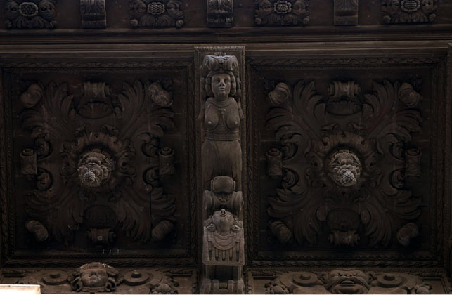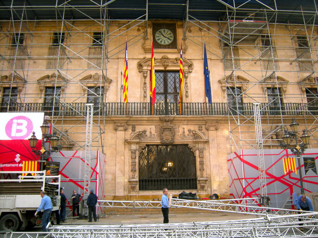 You may have noticed that the Palma town hall building has been cladded in scaffolding for the last four or five months. Restoration work was undertaken to the roof. At the same time, the structure of the scaffolding allowed the experts easy access to the wooden sculptures adorning the eaves of the building. Upon inspection, it seems that it came as a surprise to them that the 330 years old wood carvings and sculptures were in pristine condition, give or take some minimal onset of microorganisms which now calls for a thorough clean-up operation. The impressive cantilevered overhangs with an unusual depth of 3.60 m were mounted in 1680, having been carved by the carpenter, Josep Vanrell, after a design by the sculptor, Gabriel Torres.