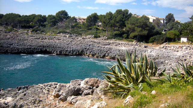 The Caló d’en Manuell in Portocolom (photo) is a rather attractive rocky bay. One day last week, I sneaked through the gardens of the Jardin del Rei urbanisation and slipped out through a gate in the fence towards the coast. There is no access to the water and there is no beach. Once down at the waterfront, I found it rather tricky to navigate around the cove or to trace my steps back to where I had come from. It seemed easier to tumble along the uneasy sharp rocks and seek an exit on the other side of the bay. Once there, I found apartment buildings with fenced gardens but I had already done enough trespassing for the day. Eventually, I found a public path leading back up to the civilization, somewhere near the Bar Sivines. There might be better access by boat.