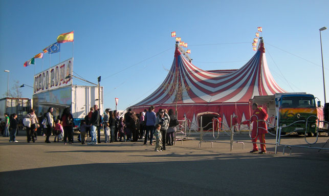 The Circo Roma circus is currently touring Mallorca and now, performing for the next few days in our town of Felanitx. The people of Felanitx were out in hordes last night to take their youngsters to see the pajasos (clowns) and have a daring glimpse at some of the wild animals, dromedaries, rhinoceroses, lions, goats, geese and brown bears (see photo below).