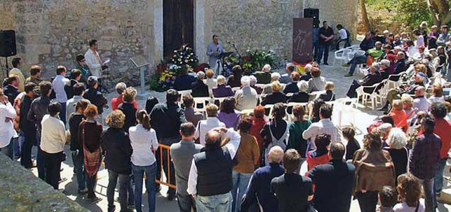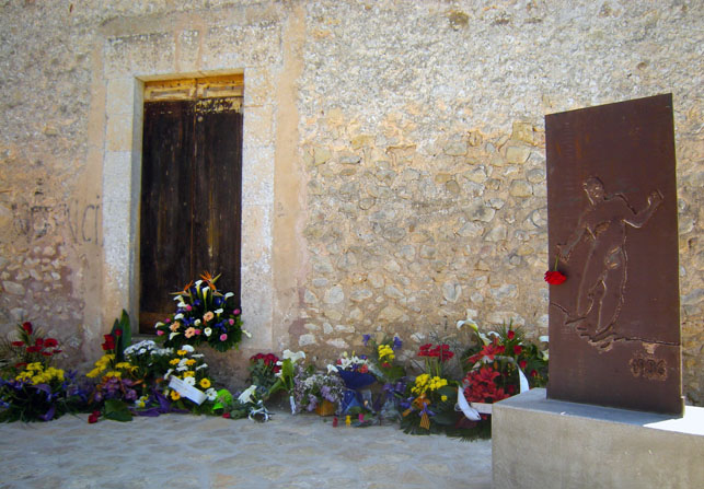A commemorative act was celebrated last Saturday in Porreres in honour of victims of the Spanish Civil War. The scene of the homage was the so-called Racó de la Memòria, the very scene of the killings, behind the Oratori de Santa Creu, a small church on the outskirts of the pueblo, dating from the 18th century. Documents show that in 1938, during the Spanish Guerra Civil (Civil War), some 120 Spaniards, including 32 from Porreres, were killed by fusillade behind this very oratory. One can still see bullet holes in the outside wall and in the wooden door, assumedly dating from the atrocities.