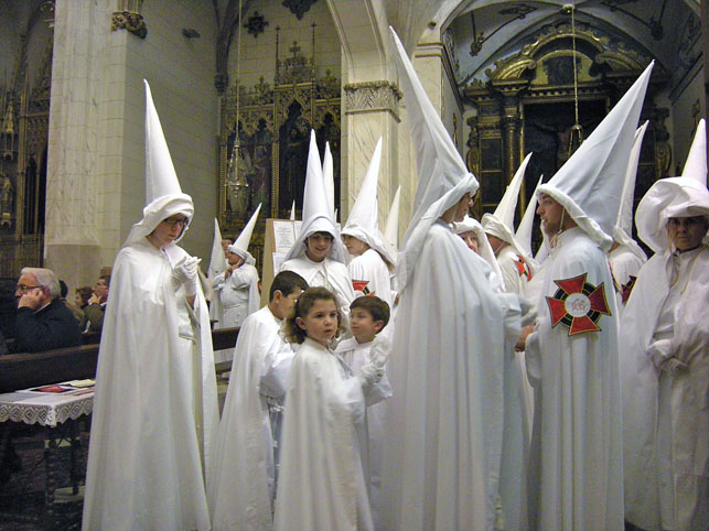 Last night, the first of this year’s Easter processions was held in Felanitx, the Processó del Silenci (Procesión del Silencio, Silent Procession). The procession started with a congregation at the parish church of Sant Miquel, where my photo was taken, and proceeded through the narrow streets of the town centre of Felanitx to the Convent de Sant Agustí. There was no sound other than a throbbing drum beat. A solemn affair.
