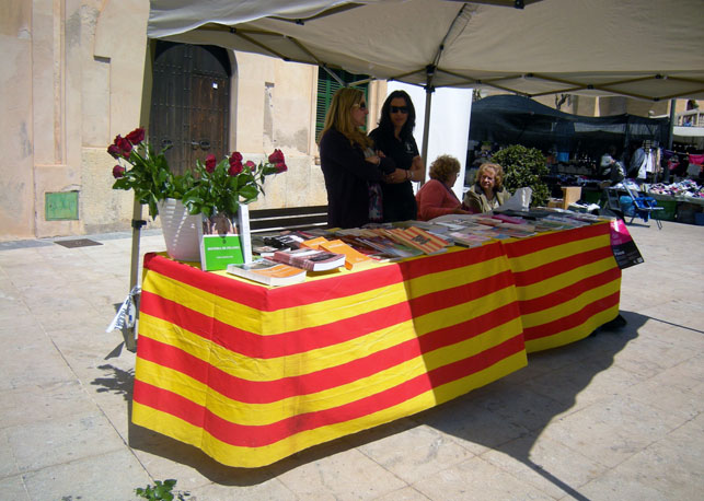 Every year, April 23rd is celebrated as the Diada de Sant Jordi, here in Mallorca, or as St. George’s Day in places such as England, Canada or Portugal. Spain as such does not join in the celebrations but, Spanish provinces formerly belonging to the Corona de Aragón do, such as Valencia, Catalunya and Aragón. There, and here in Mallorca, the Day of Sant Jordi is celebrated as the Day of Books and Roses. On this day, and weather permitting, books are offered in open-space book markets, discounts are offered on all book purchases and each book buyer is gifted with a red rose.