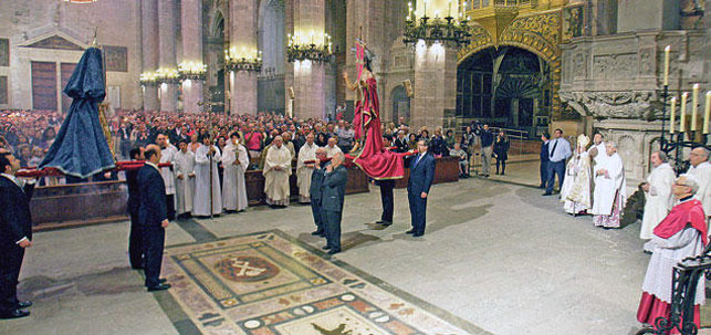 The photo (top) was taken in Felanitx, Mallorca, Baleares, Spain. The date: April 24th, 2011. The time was 10:46:01. The photo (bottom) was borrowed from the Internet, showing the Encontrada being celebrated in Palma’s Cathedral, courtesy of diariodemallorca.es.