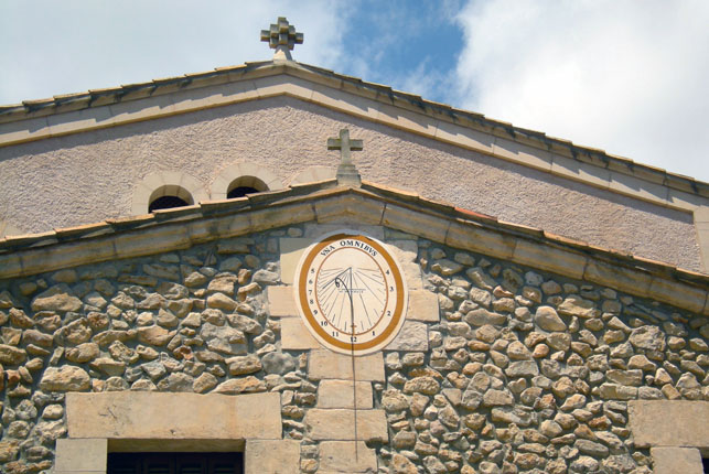 The sundial facing the Plaça Nova in Sant Llorenç des Cardassar belongs to the Vicario (vicarage) building. I guess that it was designed sometime around 1895 to 1905. The inscription gives the year 1999, though, in Roman numerals: MCMXCIX. One could argue that 1999 could also be written as MIM but, that would not be coherent with the numeral system of ancient Rome. The year 1999 refers to the date of a restoration of the original design. It would appear that not a very good job was done by the restorers as some of the colour of the outer ring is coming off already after barely 12 years.