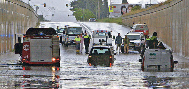 Yesterday was the meteorological start of Summer. Here in Mallorca, one wouldn’t believe it. For some strange reason or other, it is not unusual for Mallorca that heavy, monsoon-like, torrential rainfall would occur at this time of year, a phenomenon known here as Tromba de Agua (Catalan: Aiguat). Two days ago, Palma and some of its suburbs recorded intense rain of up to 62 litres per square metre in only one hour in Son Ferriol, up to 30 litres in Marratxí and 25 litres in the area of Porto Pi. At the meteorological station of Porto Pi, the precipitation amounted to 6.5 litres within barely 10 minutes, indicating some extraordinary weather activity indeed. Metro services had to be suspended for up to one hour in some areas of central Palma. Yellow weather alert had to be raised yesterday for the airport of Palma as well. Heavy lightning with over 100 rays was recorded on the outskirts of Palma. The torrential Tromba rain came with a significant drop in temperatures, from an unusually high 28.5° C on Monday to 24° C on Tuesday. Elsewhere, the port of Maó (Mahón) was closed for six hours in Menorca, and some ferry crossing had to be cancelled between Alcúdia and Ciutadella (Menorca), as well as between Menorca and Barcelona.