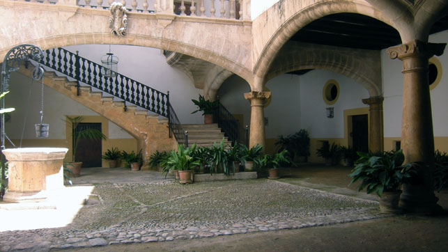The courtyard of Ca n’Oleza, dating from the end of the 17th century, is one of the best preserved patios (courtyards) in Palma and one of its best known. The imposing building was constructed for Jaume Ballester d’Oleza i Ballester (1625-1699) who came from one of the oldest and most noble families in Mallorca. One of his ancestors, Jaime de Oleza, had come here with King Jaume I, the conquistador, in 1229. The Oleza family was – and is – closely related by blood and by marriage to other families of nobility here in Mallorca, such as the Sureda, Vivot, Berga, and Togores, as well as the Condes de Ayamans. It’s a small world.