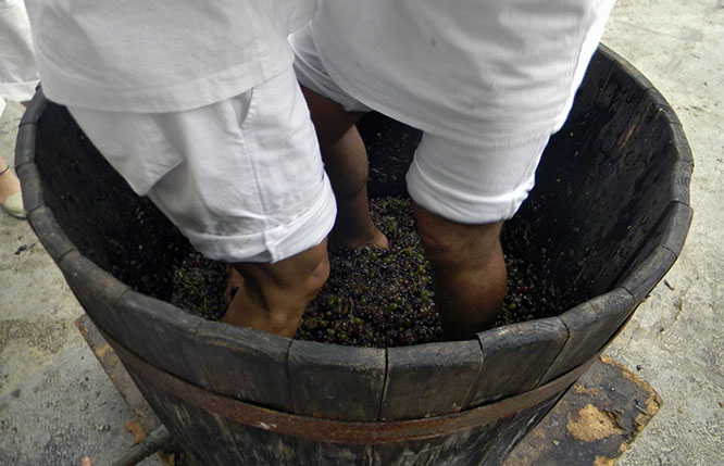 Yesterday, it was the same again but, this time in Binissalem. There, the Festa des Vermar was, and still is, in full swing. The de-stalking and crushing of the grapes was done the old way, just like the Romans are thought to have done it all those years ago. The grapes were trod upon. The contest was the annual Concurs de Trepitjar Raïm (Grape Treading Competition) and the result was a sticky mess of crushed grapes and again, sweet grape juice or must. I could not tell which grape variety was used; I suppose a bit of everything.