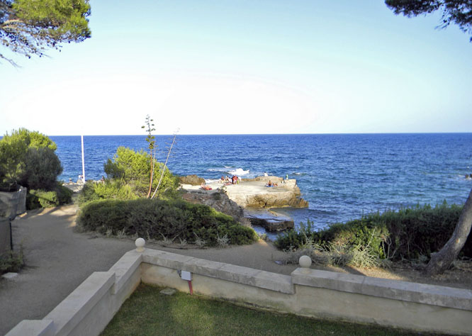 When we went for a drink in Canyamel before going to a concert given by Maria del Mar Bonet a few weeks ago, we spotted a beach, Cala Rotja, that I had not been to before. The tiny beach is surrounded by rocks. The waters are clear and clean. The best access would be from the Torre de Canyamel, where the concert took place, to the Costa de Canyamel. You’ll come to a roundabout with access to the hotel Can Simoneta. There you turn right and follow the road. Park the car near the only seafront restaurant there. To the left of the bar you’ll find a lane going straight down to the sea. I did not do any snorkeling when we went, but, I am told that this Cala is very suitable for some underwater activity, either snorkeling, diving or even speleodiving (cave diving). There is a submarine cave a few metres deep and there is the near-by Cova del Congre cave at a depth of 20 metres. It might be fun to discover somewhere new, above or below the water. If diving is not for you, you could just go for a drink and the stunningly beautiful view.