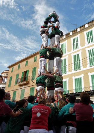 Tomorrow, October 15th, three Castellers organisations will gather in Palma to demonstrate their skills. Castellers are people who form Castells (human towers), a spectacular demonstration of strength, balance and courage. If you have never witnessed this very Catalan tradition, now is your chance. Only last year (2010), Castells were declared amongst the Intangible Heritage of Humanity by UNESCO.