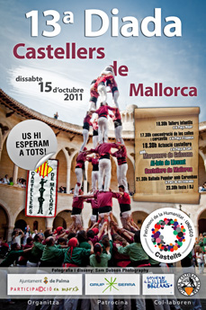 Three associations will participate tomorrow in Palma, Castellers de Mallorca, Al·lots de Llevant and Margeners de Guissona. Guissona is a place halfway between Barcelona and Andorra, not far from Manresa. The main event will start at 18h30 in Plaça de Cort, but, there will be a workshop for the youngsters at 10h30 in Plaça Major and a Ballada Popular at the Parc de les Estacions at 21h30. The Ballada Popular will be performed by Carambau, a Mallorcan folklore troupe.