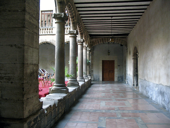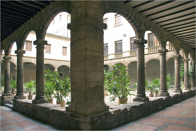 Sadly, some of the nicest courtyards in Palma de Mallorca are not accessible to the public, unless there are exceptional circumstances. Take for instance the patio (courtyard) of the Colegio de Nuestra Señora de Montesión. You can get in there if you happen to be a student of that Jesuit secondary school, or a teacher, neither of which I am. Thus, I was only once able to enter that courtyard a number of years ago. Then, there was a concert going on, hence the red carpet and the chairs in the photo (above). I have since tried on numerous occasions to gain entrance for the sole purpose of taking a better photograph, but to no avail. The building dates from the early 17th century and the patio retains some of the original features such columns, arches, a well and so forth. Last Summer, I was told that another concert would be held soon on the occasion of the 450th anniversary of the foundation of that institution, but, I either missed that event or it has not happened yet. In any case, here’s my photo (above) as well as a slightly better one from the Montesión‘s page on Facebook.