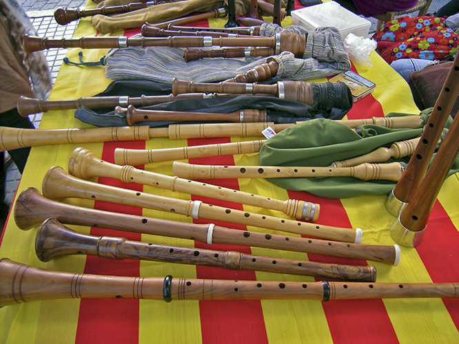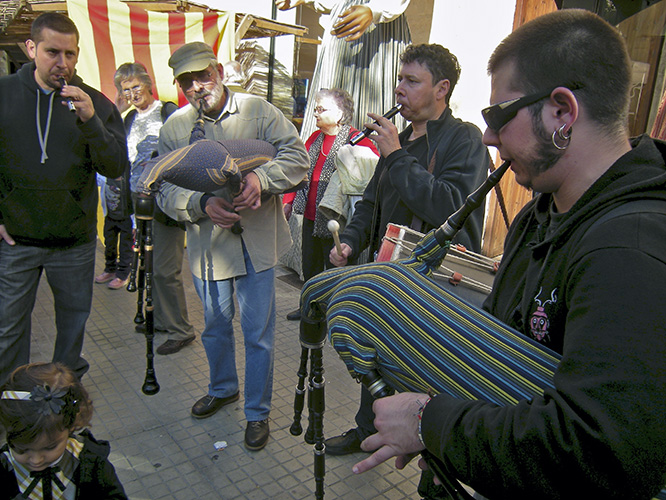 The pueblo of Sa Pobla, bang in the middle of the island, was the meeting place this weekend just gone for Mallorca’s Collas de Xeremiers, the small groups of musicians playing traditional instrumental Mallorcan music. A good number of musicians play the Xeremía instrument here on the island, a bagpipe not all that dissimilar to the Scottish Highland version but still, quite distinct. A Colla is normally a duet composed of the Mallorcan bagpipe with a second musician playing both, the Flabiol (tabor pipe) and a small Tamborí (drum). The Trobada de Xeremiers is an annual event. I don’t know where they might have met last year, but, in 2009, the meeting was held in Mancor de la Vall. Yesterday’s meet was the 17th such event.