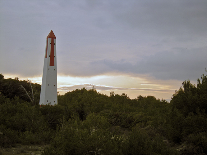 If ever you walk along some or other stretch of coastline in the north of the island, in the Badia d’Alcúdia, between l’Albufera de Muro (Port d’Alcúdia) and Colònia de Sant Pere, you will find quite a number of strange-looking, obelisk-shaped towers, perhaps two dozen or so altogether. These Torres d’Enfilació (towers for aiming) always come in pairs; some of them have recently been repaired by the Ministeri de Medi Ambient and painted in a stark design using white and red colour. Somebody out there must be quite caring about these remnants of the past. The towers seem to be placed at equal distances of 1.2 km from pair to pair. I am not quite sure as to what the towers are or what their function might have been. All I can gather is that they were built by the Spanish military’s Naval division just after the Spanish Guerra Civil. Some local people say that the towers were built for triangulation purposes and had to do with submarines and their exercises in positioning maneuver. Others have it they were used for aiming and targeting practices of submarines and the firing of dummy torpedoes by the submersible craft. Submarines were stationed in Mallorca and in the Alcúdia Bay as part of the Polígon d’Armes Submarines which operated between 1941 and 1970. Nearby, there also was of course, and still is, the Naval airport of Port de Pollença. Perhaps some of the submarines were docking there; who knows?