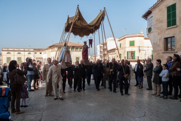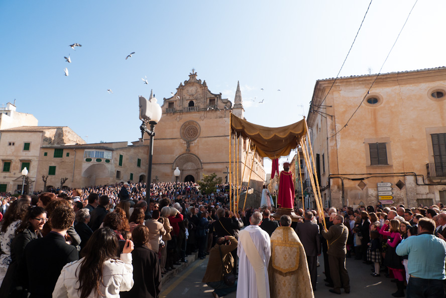 In a procession, this time without penitence and without the obligatory Easter hoods and capes and candles, the statue of Jesus is brought from one church to another where a statue of Maria awaits him. This morning, like every year, the encounter happened again in Felanitx, Santanyí, Manacor, Sineu, Palma and probably elsewhere on the island as well, and was in each case followed by a solemn church service. You may not have witnessed the encounter this time or ever but, if you have a chance to next year, you should. I find that this is one of the many opportunities when Mallorca is at its best, always on a festive and joyous level when Mallorcans are amongst themselves and away from the tourist trade and the commercial riffraff.