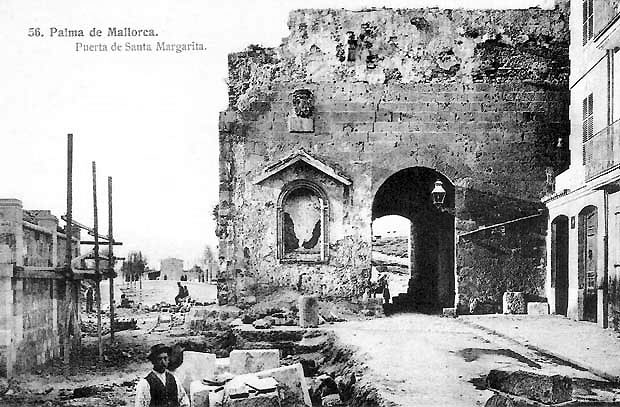 Most of the massive medieval city wall was demolished between 1902 and 1908 when Gaspar Bennàssar, the new municipal planning architect proposed the tearing-down to open up the urban area for expansion beyond the historic city boundaries. There was substantial opposition to some of the demolition plans, especially in the case of the Puerta de Santa Margarita, also formerly known as Puerta de la Conquista as this had been the point of entrance of Jaume el Conquistador, the conqueror, in 1229. Sadly, the civil disagreement did not halt the tearing-down of the Muralla (city wall) or of the various puertas. The Puerta de Santa Margarita was the last one to be pulled down in 1908.